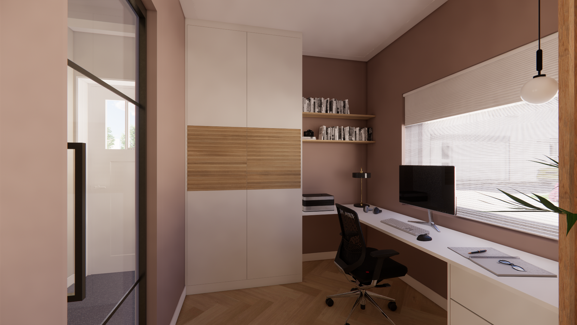 Aan de woonkamer grenst een inspirerende werkkamer.