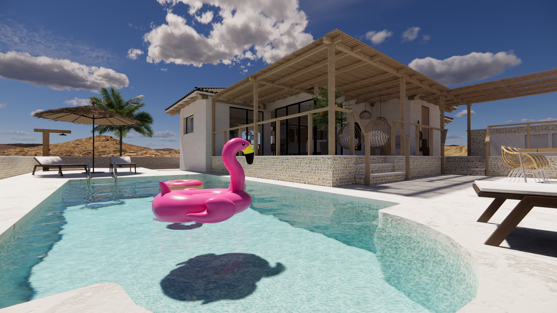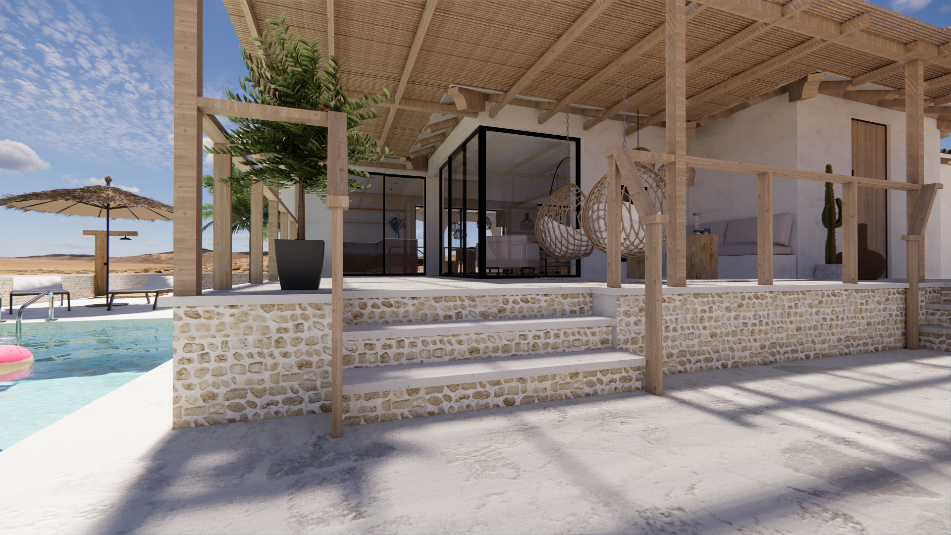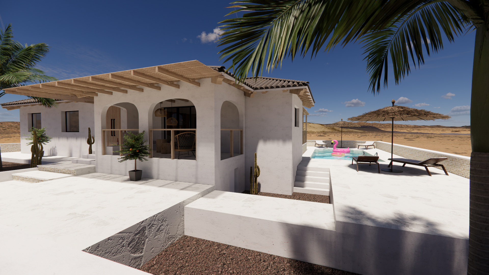 Ontsnap naar een vakantiebungalow in Alicante met de relaxte Ibiza-vibe. Deze prachtige bungalow is gelegen op een ruim perceel, omringd door groen, waardoor je volop kunt genieten van privacy en rust.